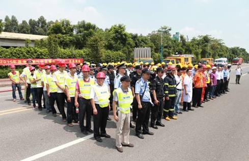 环翠东路发生天然气管道泄漏,引致驶经的面包车爆燃起火,火势迅速随风蔓延,四周浓烟滚滚、烟雾弥漫。消防官兵、燃气抢险人员陆续冲进事故现场实施抢险营救,医务人员及时转移伤员……这一幕幕的惊险画面,正是2015年荔湾区管道燃气爆燃事故“双盲”应急演练的逼真情境。