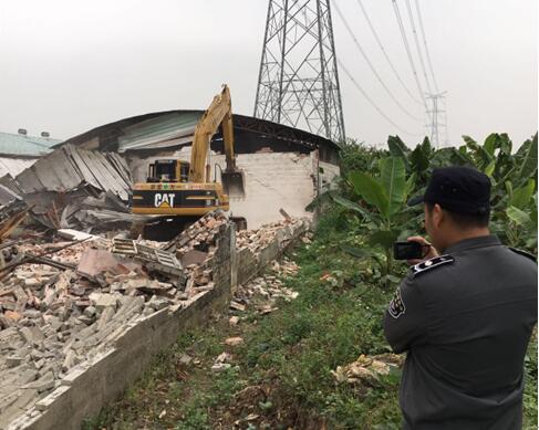南沙区城管办经过认真梳理分析,将“一次选一点,一年轮一遍”的震慑性拆违工作的第一个点确定在大岗镇,区城管办会同大岗镇,组织公安、城管、司法、国土、建设、安全、及供水供电等部门,出动执法力量与施工人员106人次、执法车辆21台次、钩机1台、风炮机1台、风焊机1台,对位于大岗镇龙古村绍华五金厂高压线下、高沙村新涌西街161号周边、庙青村大滘东街491号周边、大岗镇下掘尾路86号与88号周边的5宗违法建设,依法实施清拆,拆除违建砖混结构1050平方米、钢架结构71.5平方米、大钢柱1条、排栅240平方米,共清拆违法建设5宗、面积1121.5平方米,控停违法建设面积303.85平方米。