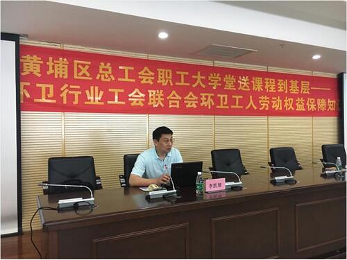 为进一步强化黄埔区环卫工人劳动权益保障知识与依法维权意识,5月11日上午,黄埔区总工会、区城管局工会、区环卫行业工会联合会联合举办了一期环卫工人劳动权益保障知识讲座。广州开发区环卫美化服务中心、区城市管理机械化作业中心、市容环卫监督管理所、各街(镇)环卫站、保洁企业环卫工人共110人参加了讲座。