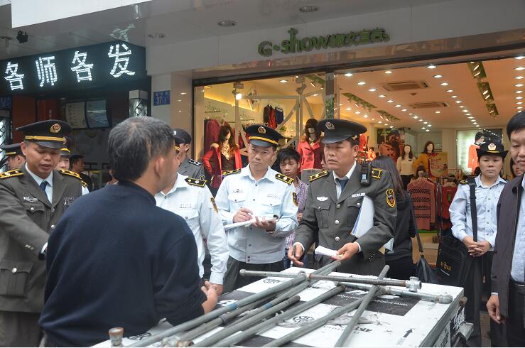 三月初,新华街城管中队在巩固前期市场整治成效的基础上,重点联动公安、安监、社区居委等各职能部门对新中路、凤华路、花城北路、丽雅新村等流动摊贩进行联合整治,扣押雨篷5顶、桌椅20多张;而后又联动区环卫所、辖区内各派出所、新华特勤中队在辖区分成三个整治行动组在夜间进行综合整治,对金城广场商圈、桂花路大排档、龙珠路糖水店、碧秀路等区域的乱摆卖、占道经营进行突击整治。按照“前台共享,后台分流”的工作模式,共扣押改装电动车3辆、改装三轮车1辆、大型手机贴膜柜子3个、柜子7个、用于占道经营的雨篷9顶、胶椅80余张、方凳16张、方桌10张、大型广告灯箱招牌7个、货架20个,查处占道经营13宗,教育纠正违章经营商铺17家。