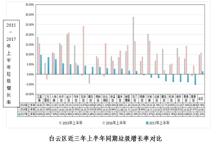 经过白云区各镇街、各相关职能部门的共同努力,生活垃圾增长势头得到初步控制,垃圾减量初显成效。2017年上半年,白云区收运生活垃圾约75.6万吨,较去年同期增长1.5%左右,相比于前三年10%的年均增长率,增长速度有明显下降。