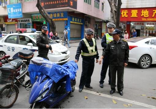 行动中,执法人员对商家的“霸占”行为进行整治,清理收缴霸占公共停车位的各类障碍物,并对占道商家进行批评教育。