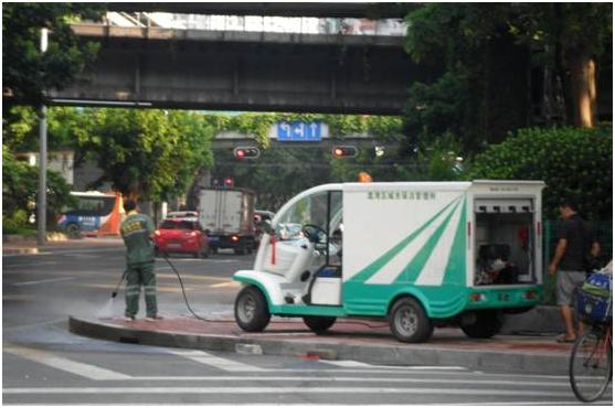 坐落在广州市旧城区的荔湾区,既有岭南建筑代表的陈家祠,又有广州最早的上、下九步行街,还有以西关美食而蝉名中外荔枝湾涌。这里每到节假日,闻名而来的游客络绎不绝,车水马龙。为了让游客有一个亮丽整洁的游览环境,荔湾区城管局在国庆节前一周,就开展组织了“还路本色”清洗马路大行动。国庆“黄金周”期间,全区3000多名环卫工人更是放弃了节假日休息奋战在工作一线。一方面,强化长假环境卫生质量,对重点路段和景点等延长工作时间、加强人员值班,每天上路检查环境卫生质量,及时处理路面垃圾和清洗路面污渍;另一方面,动用了全部机械化车辆来清扫路面,确保国庆期间荔湾区道路的靓丽、整洁。